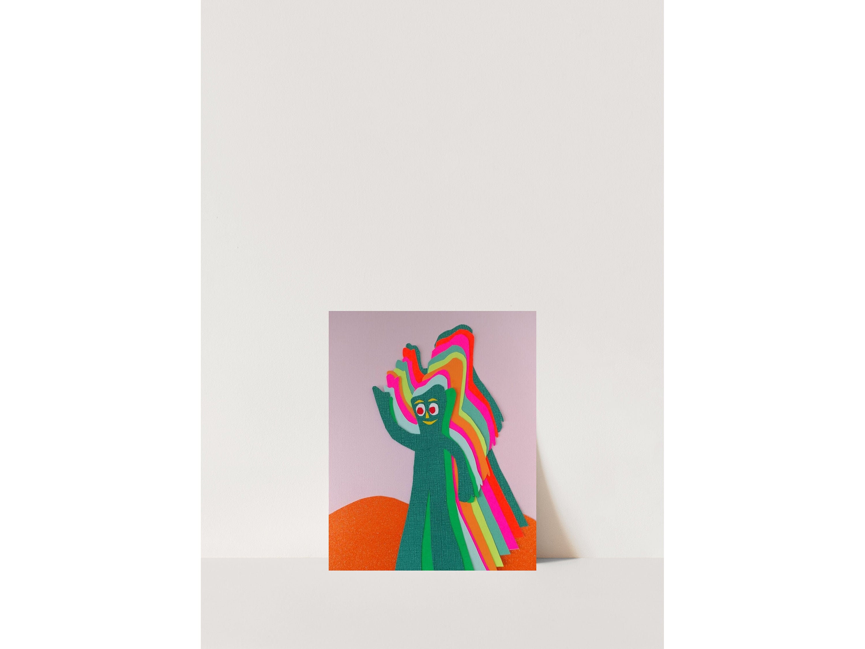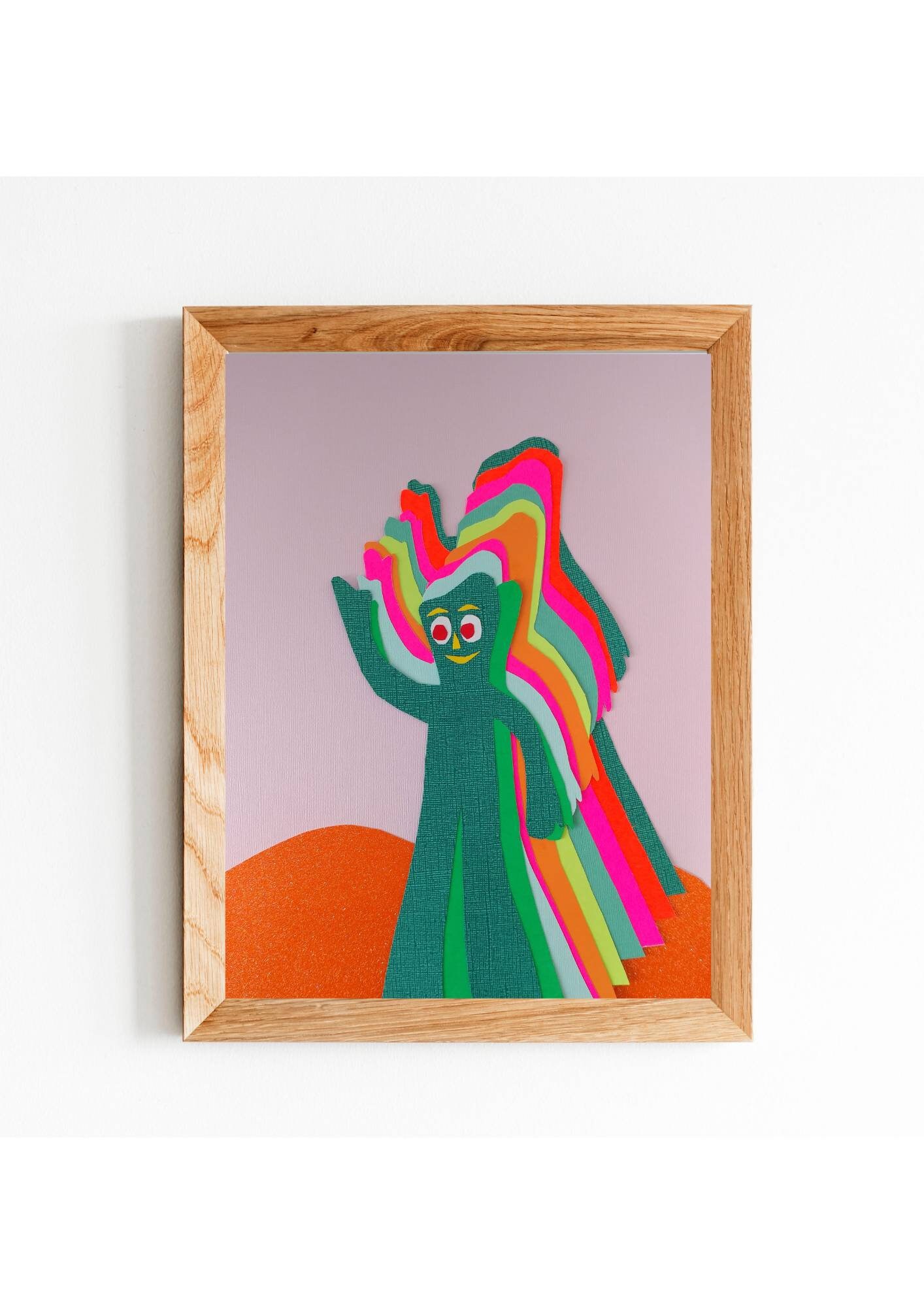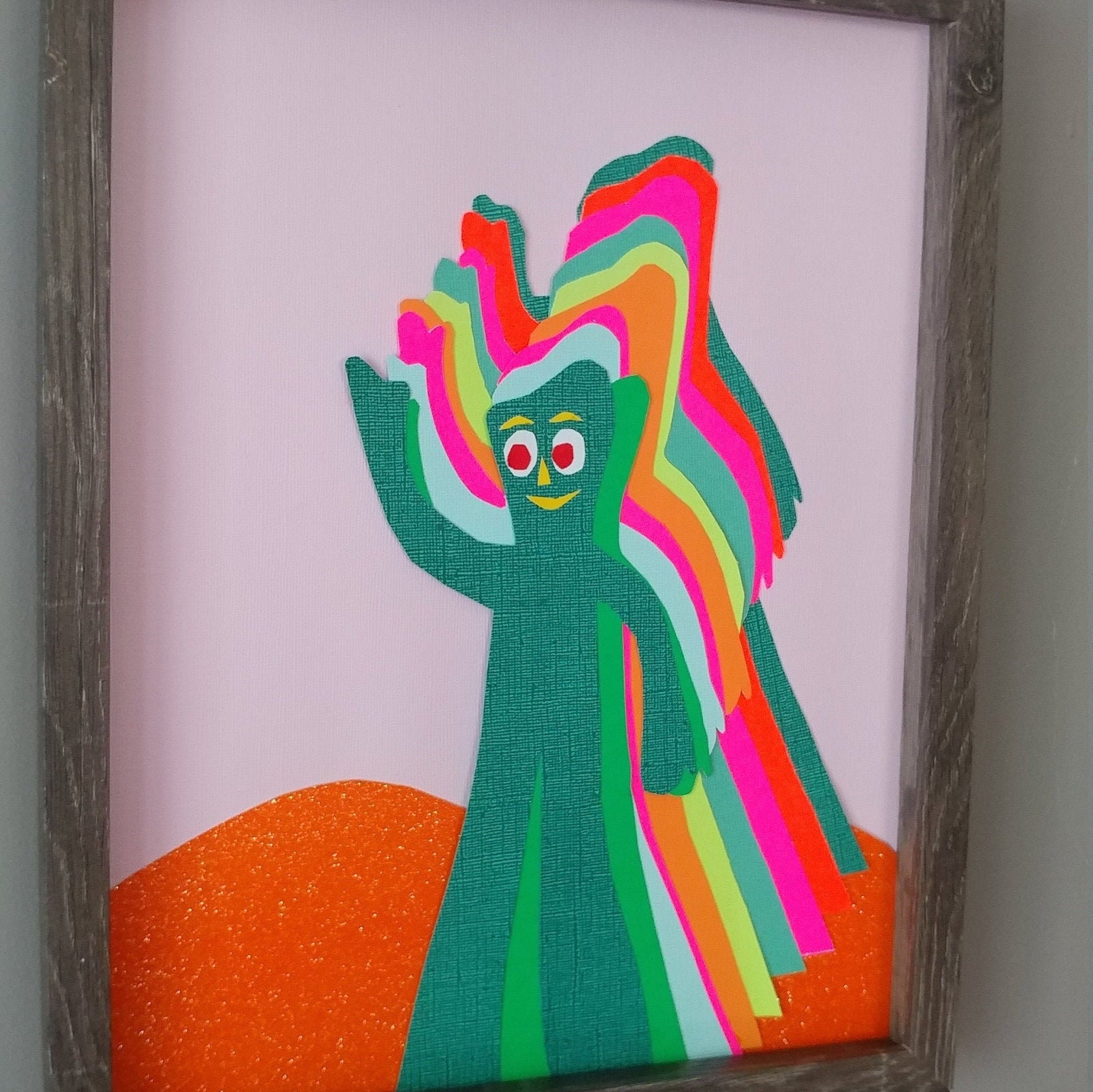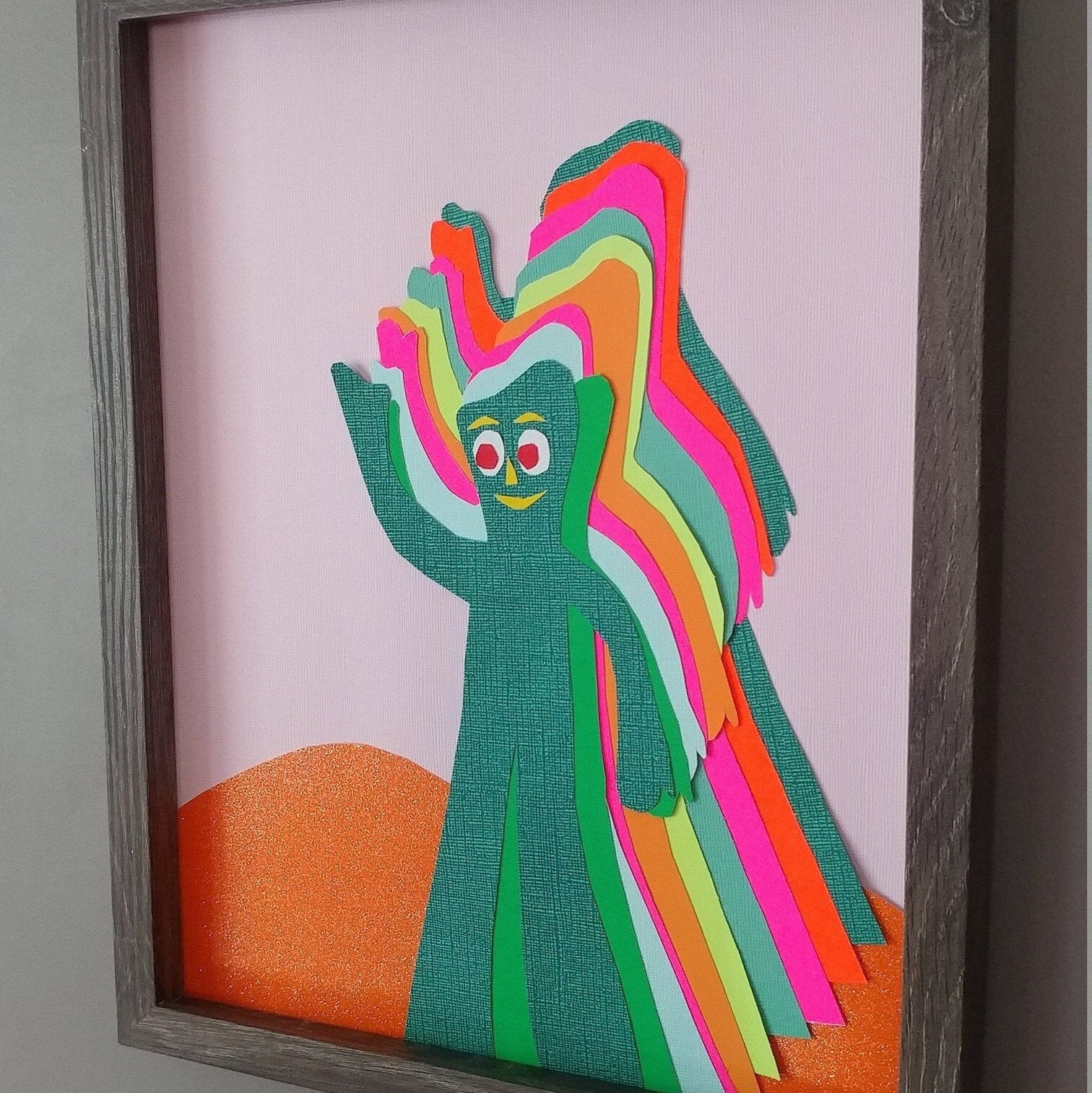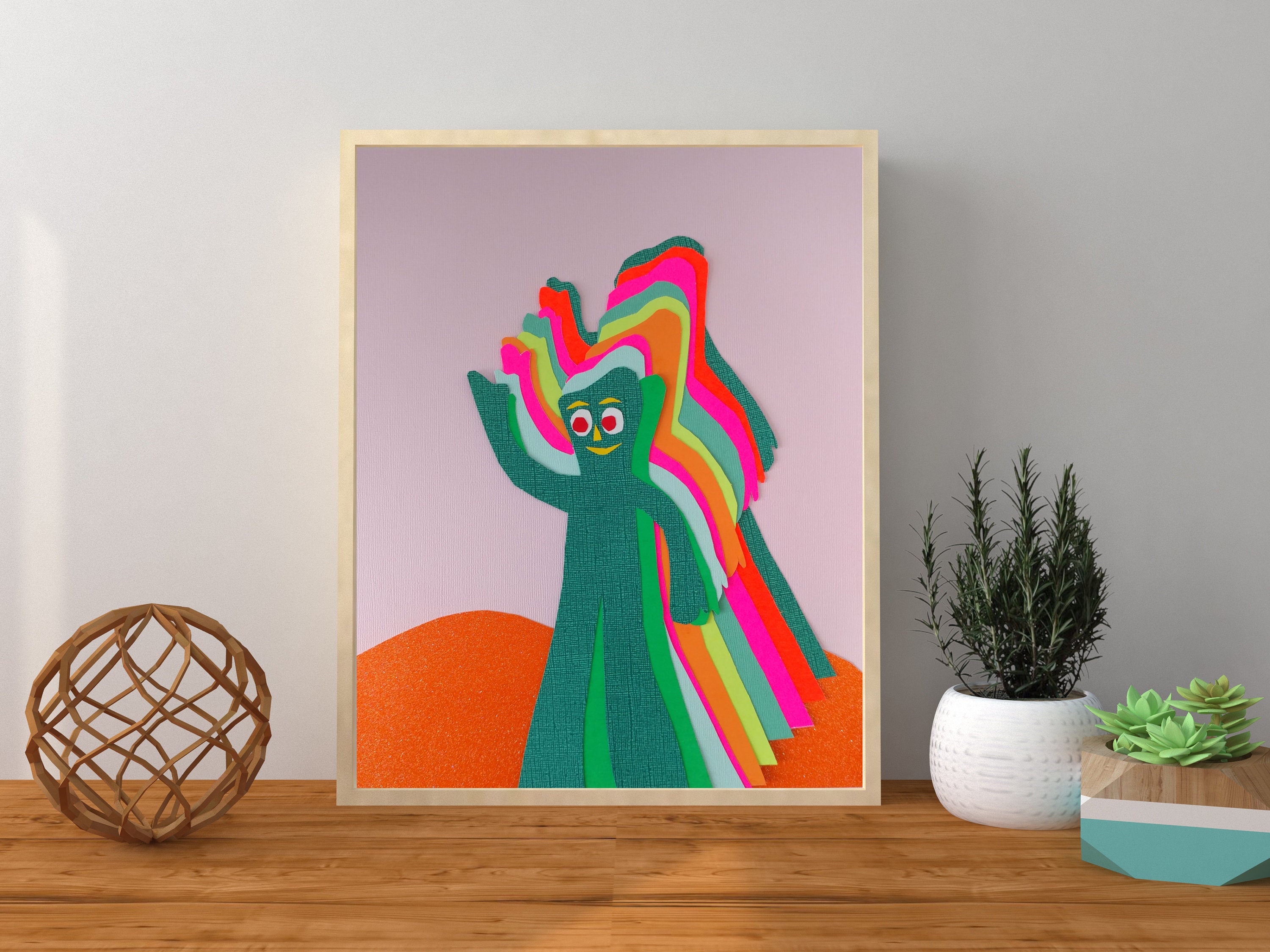 This listing is for an unframed print of my original hand cut paper illustration of this happy "Gumby".