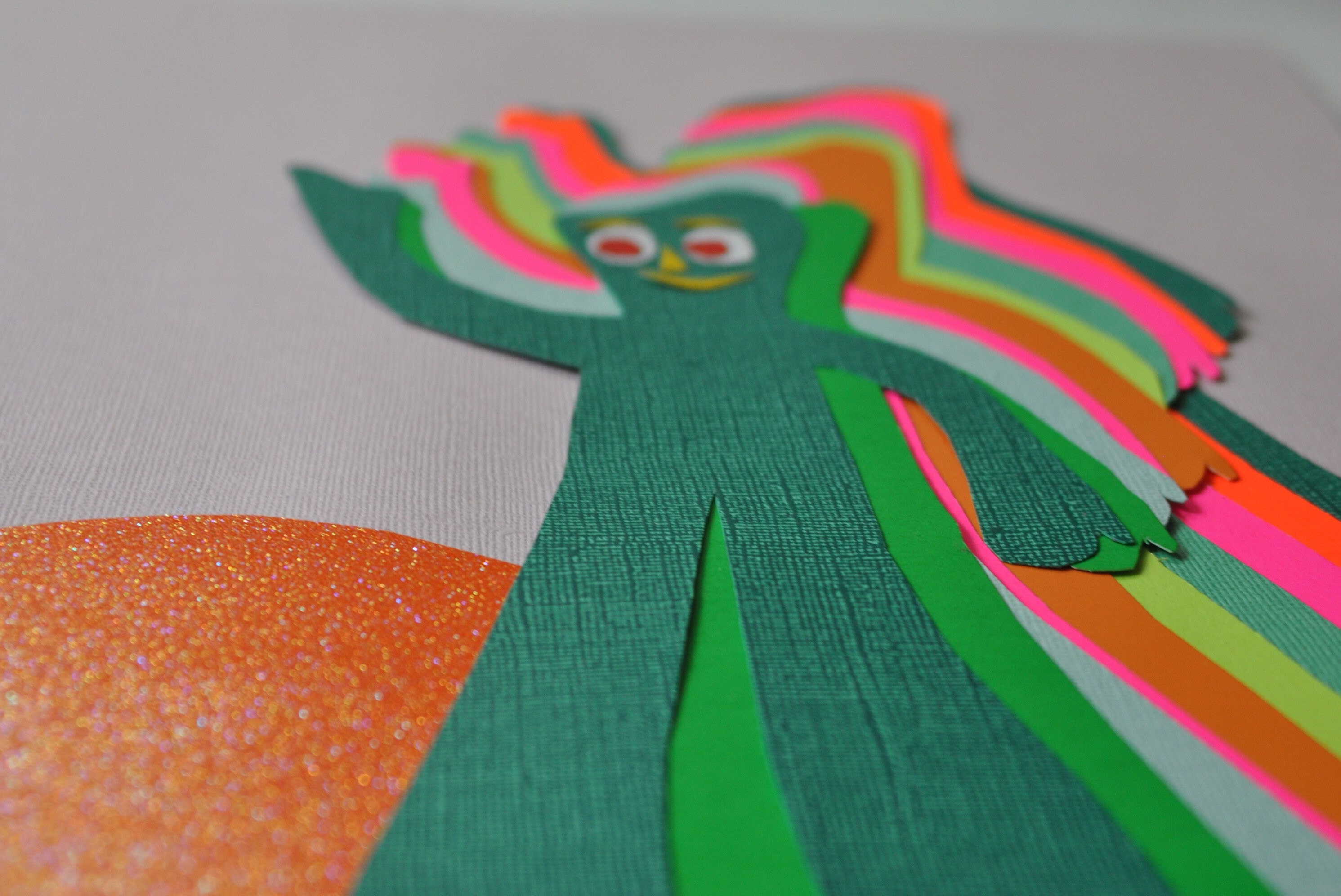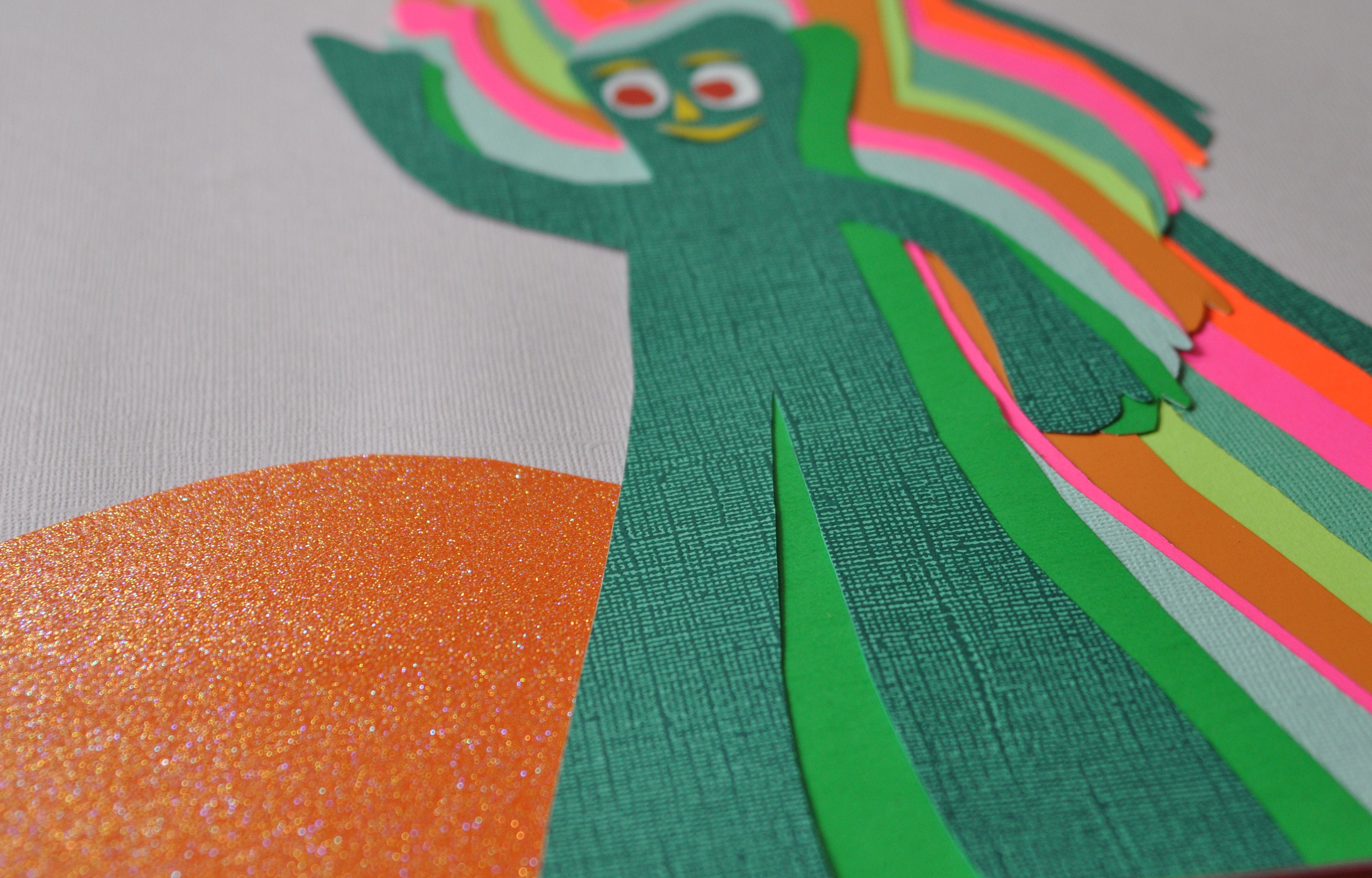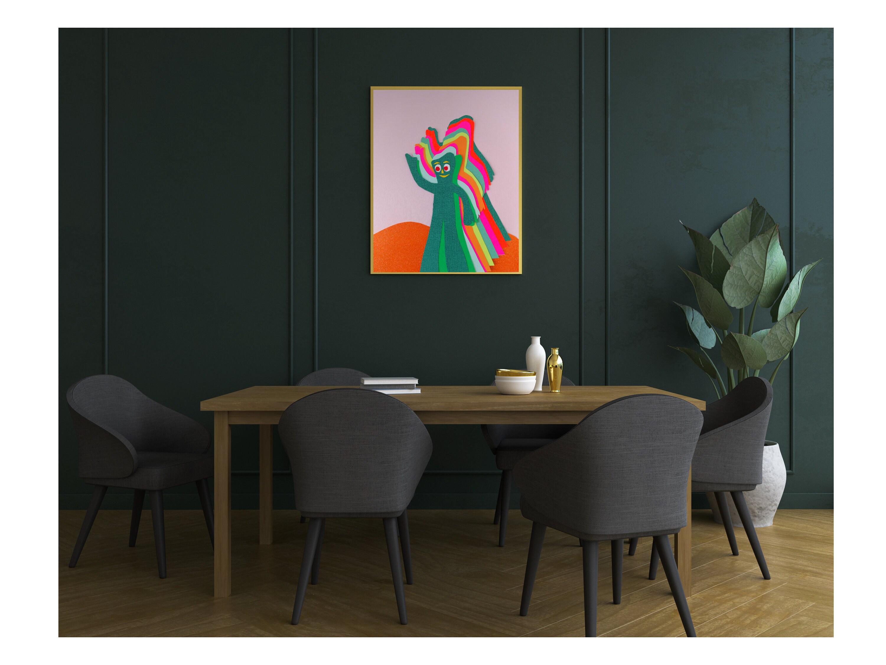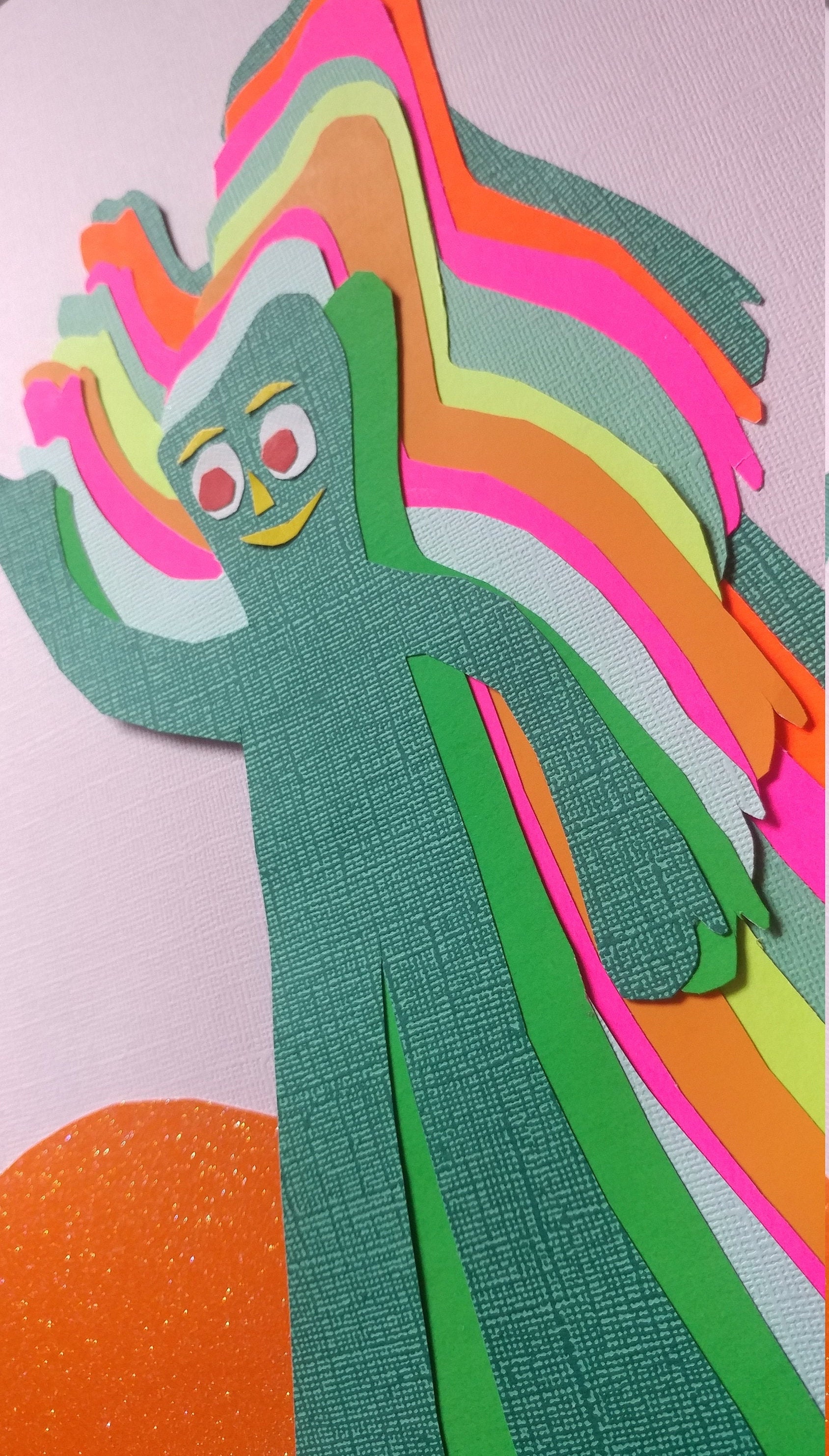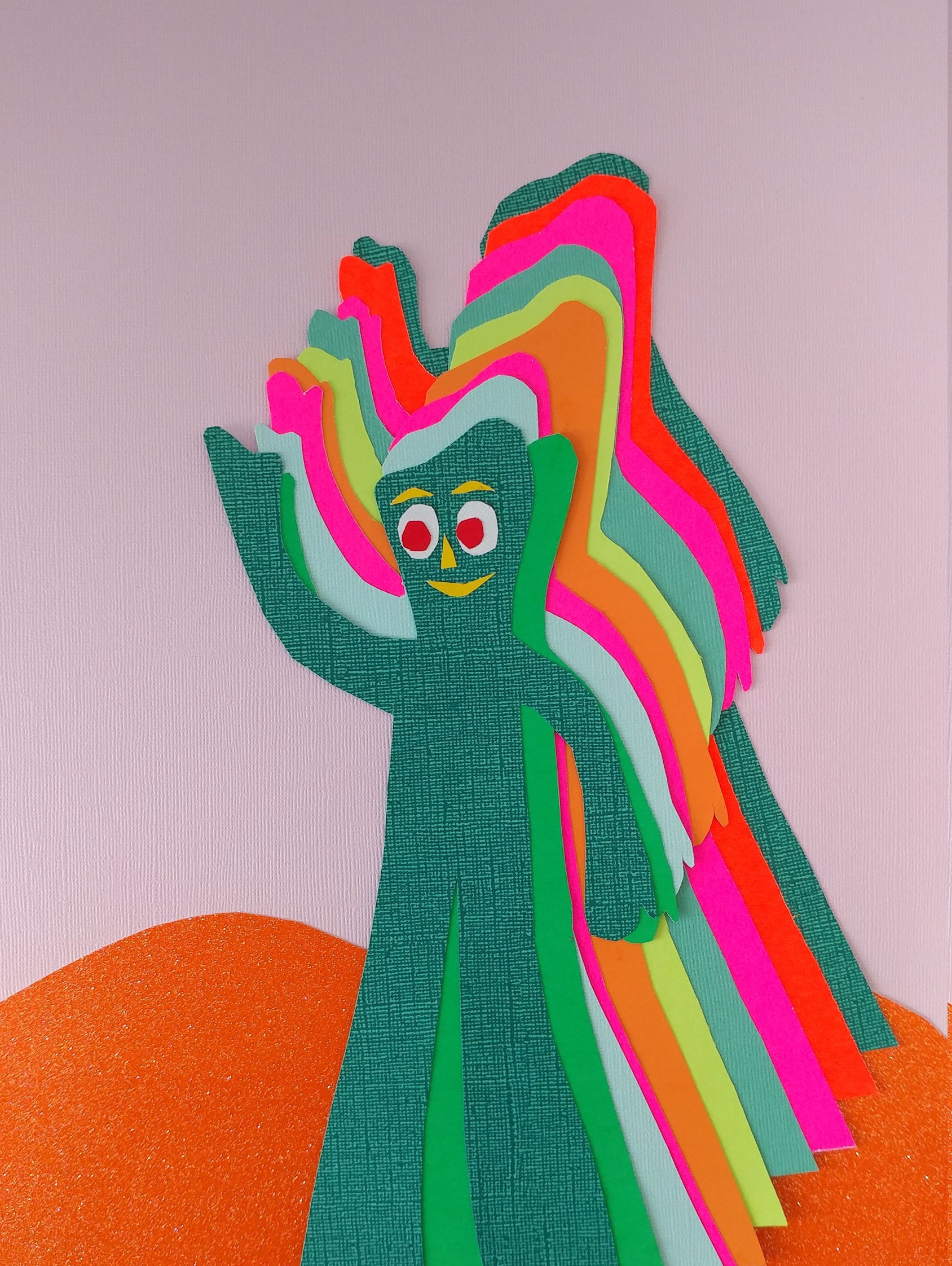 This listing is for an unframed print of my original hand cut paper illustration of this happy "Gumby".