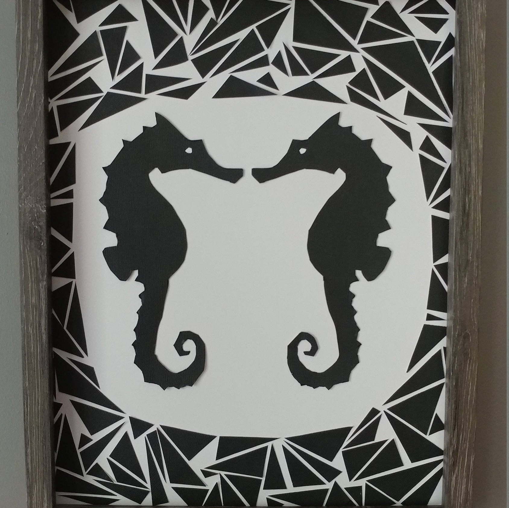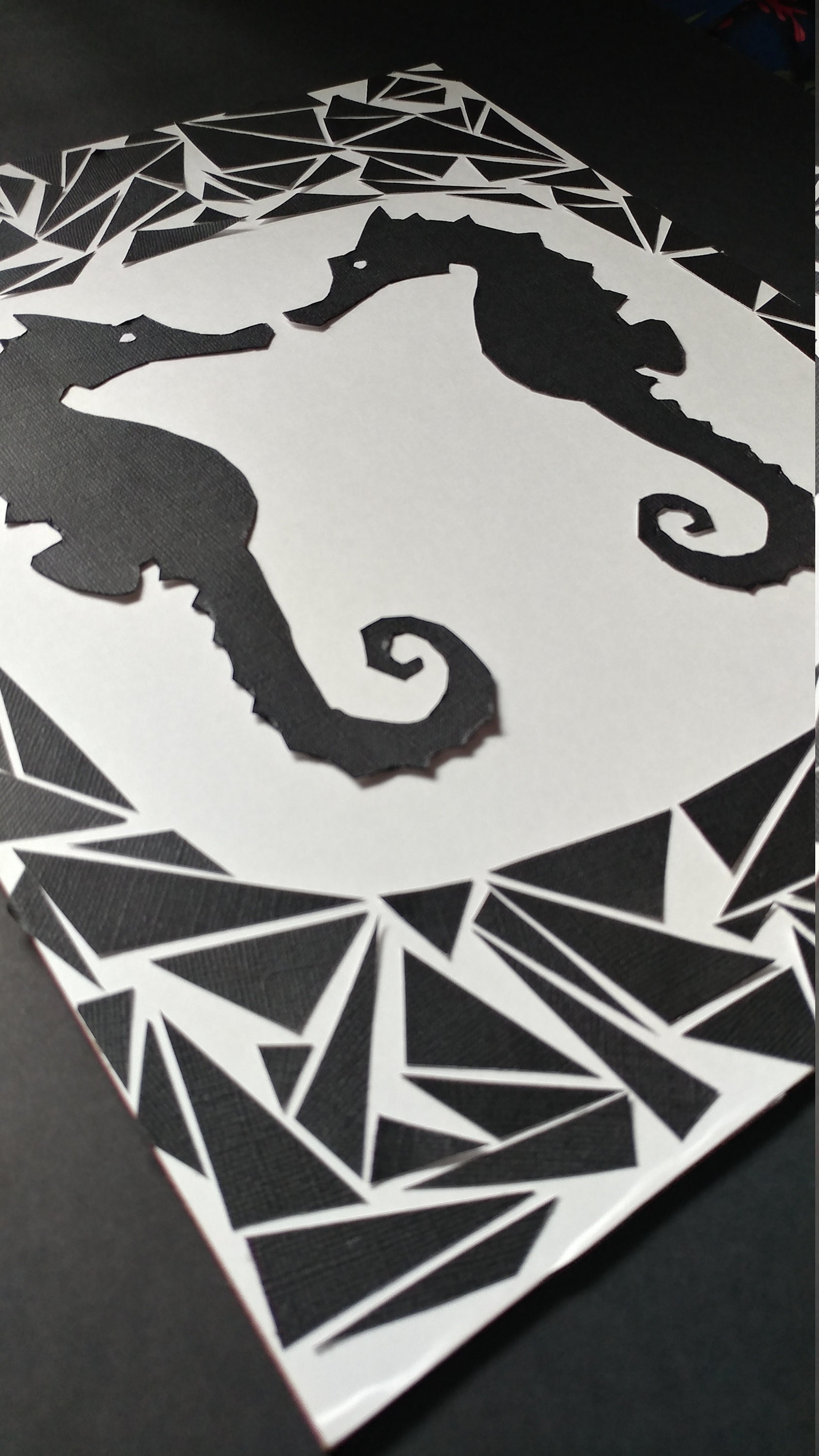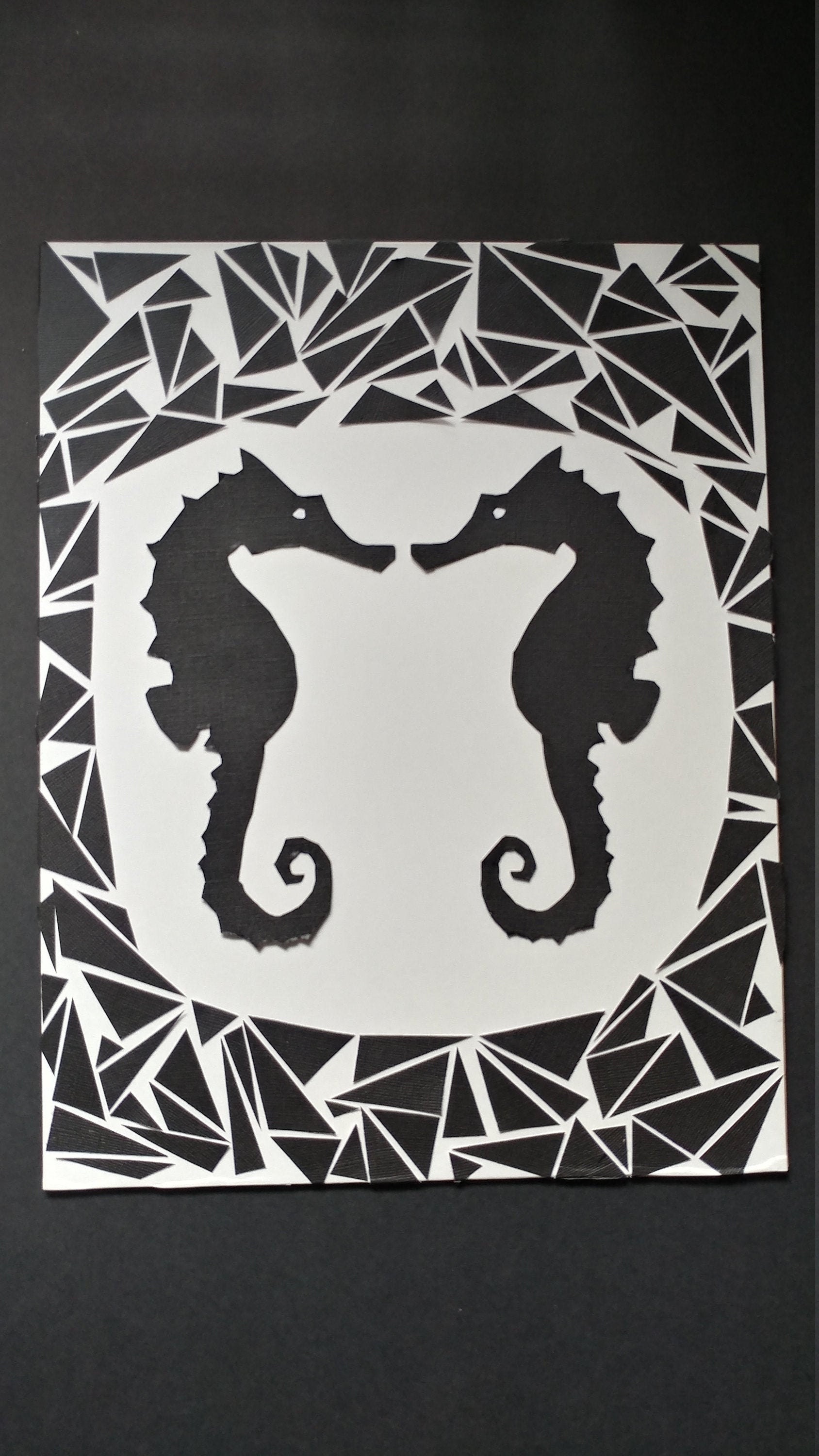 Seahorses- Hand Cut Paper Illustration-Matey. I chose the name Matey as seahorses mate for life.