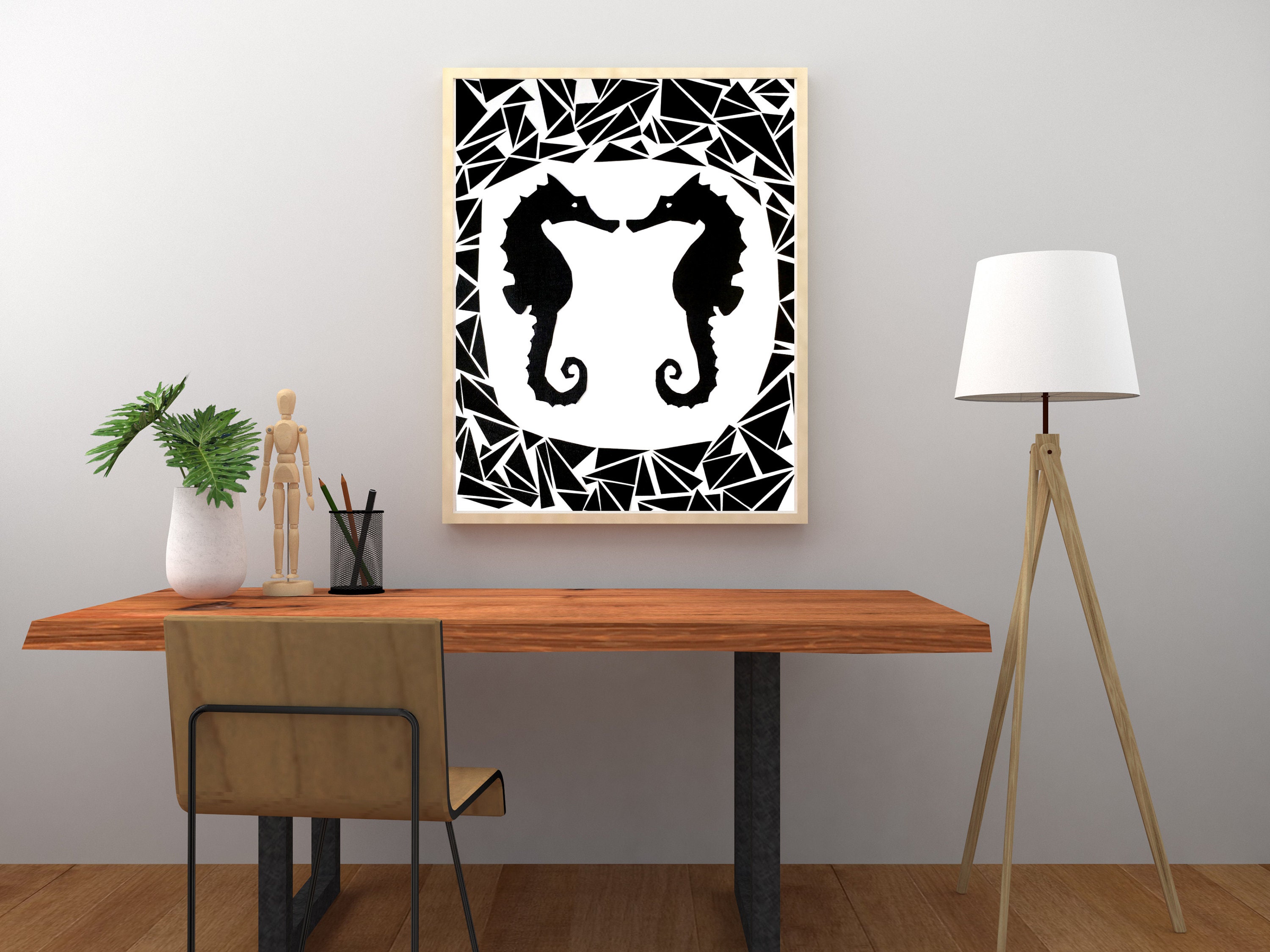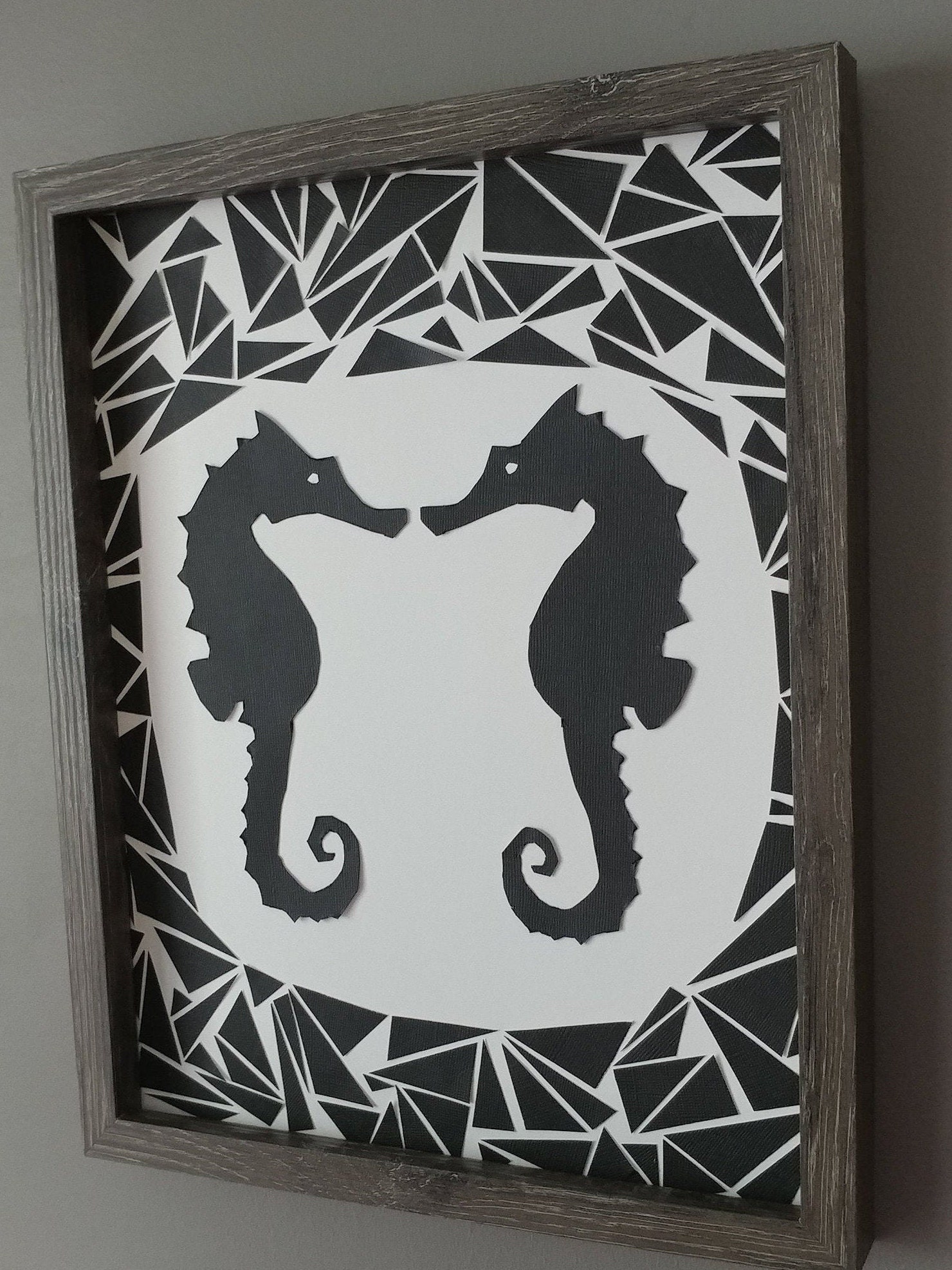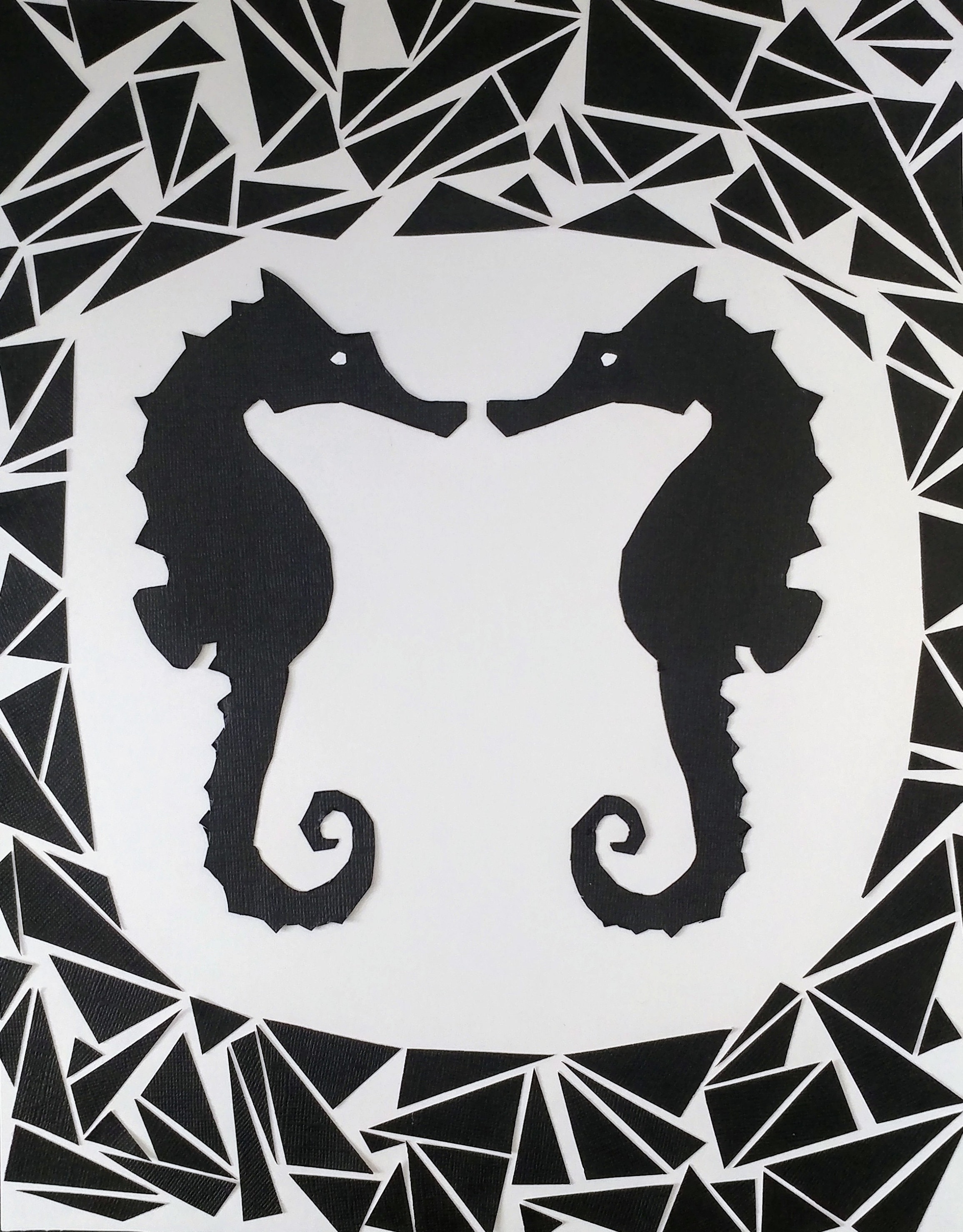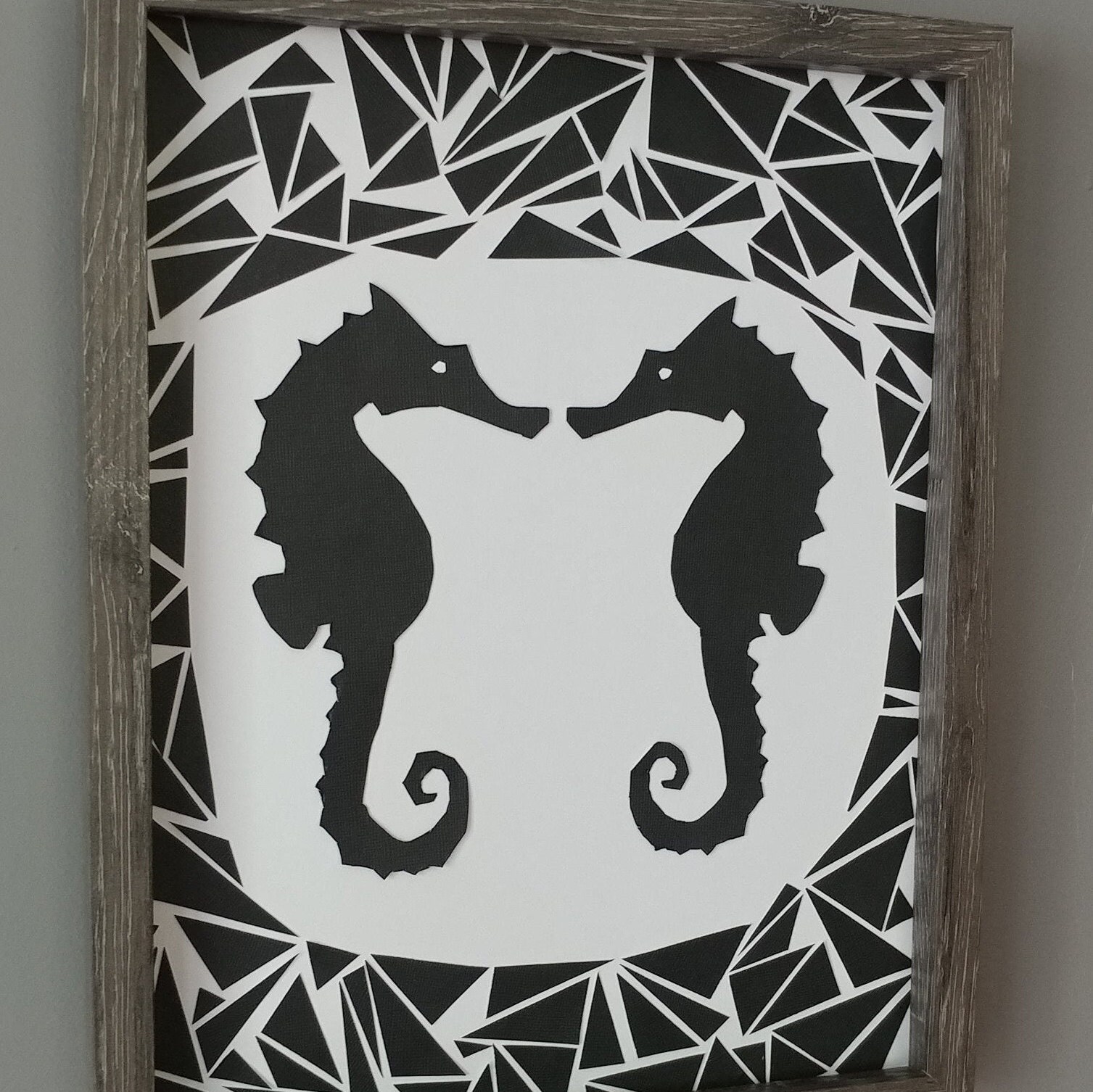 Seahorses- Hand Cut Paper Illustration-Matey. I chose the name Matey as seahorses mate for life.
